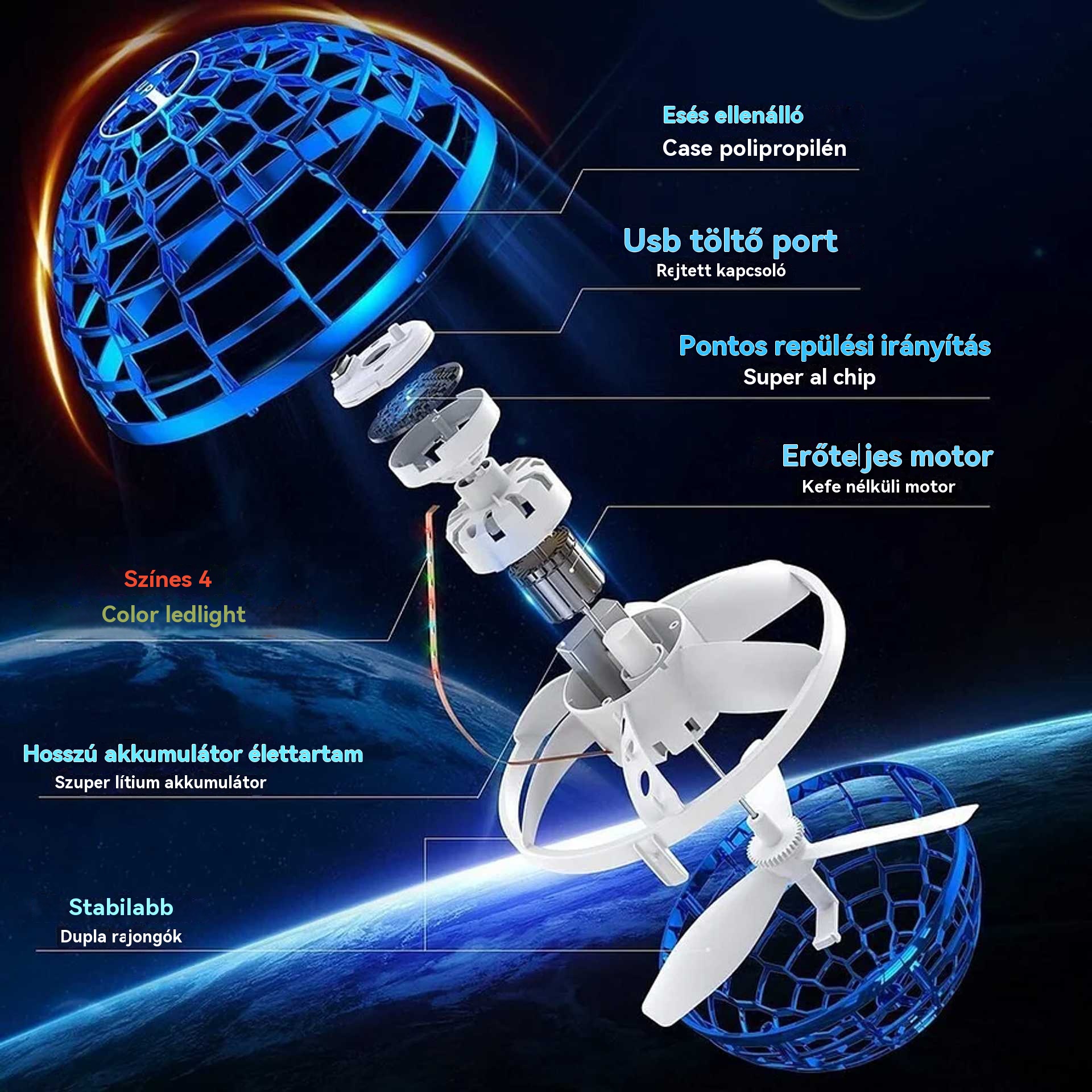 🛸🪐🌀 UFO intelligens indukciós forgó labda, varázslatos repülő labda, felfüggesztett labda, ujjbegyre világító varázslat