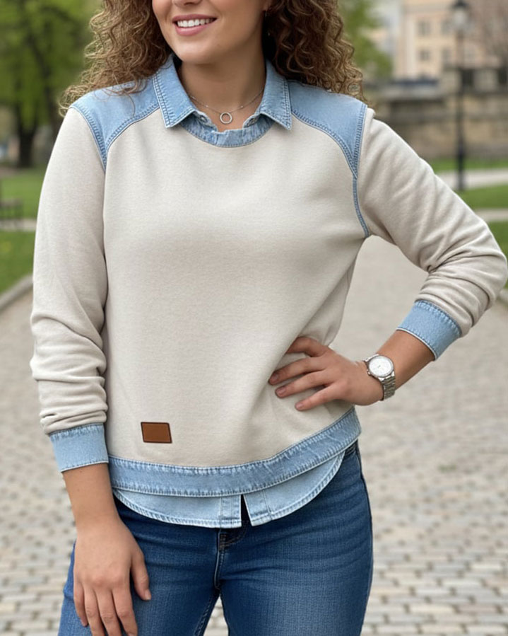đ·Ăj tĂ©li divatos felsĆ farmer patchworkkel â kĂ©nyelmes, hosszĂș ujjĂș mindennapi viseletre