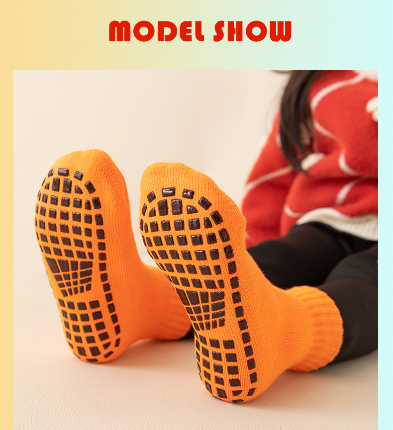 🧦【Kup 3, a 3 dostaniesz gratis】Antypoślizgowe skarpetki podłogowe, pogrubione i ciepłe, idealne na jesień i zimę, zaprojektowane specjalnie do trampolin, dla dorosłych, do jogi w pomieszczeniach i na place zabaw dla dzieci.