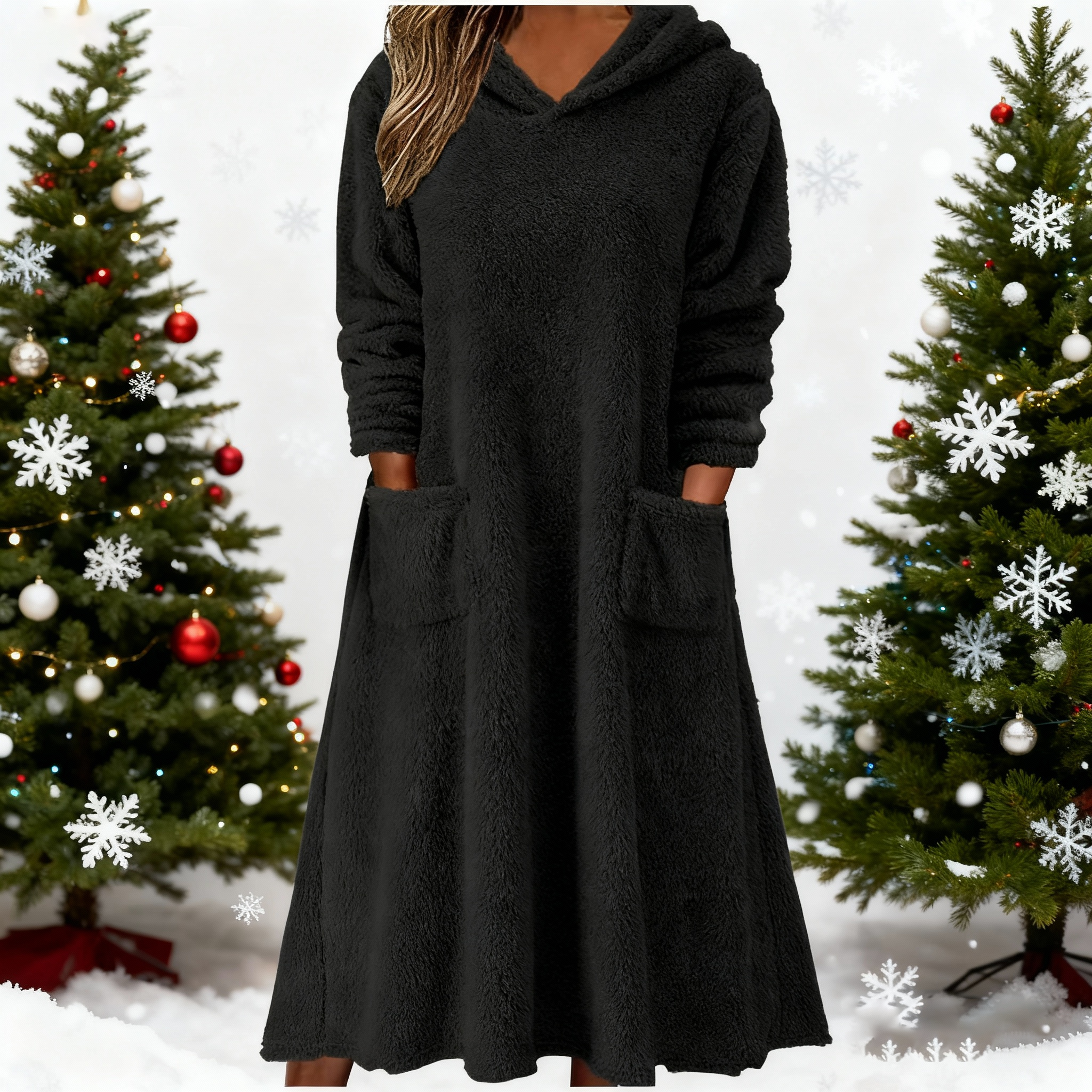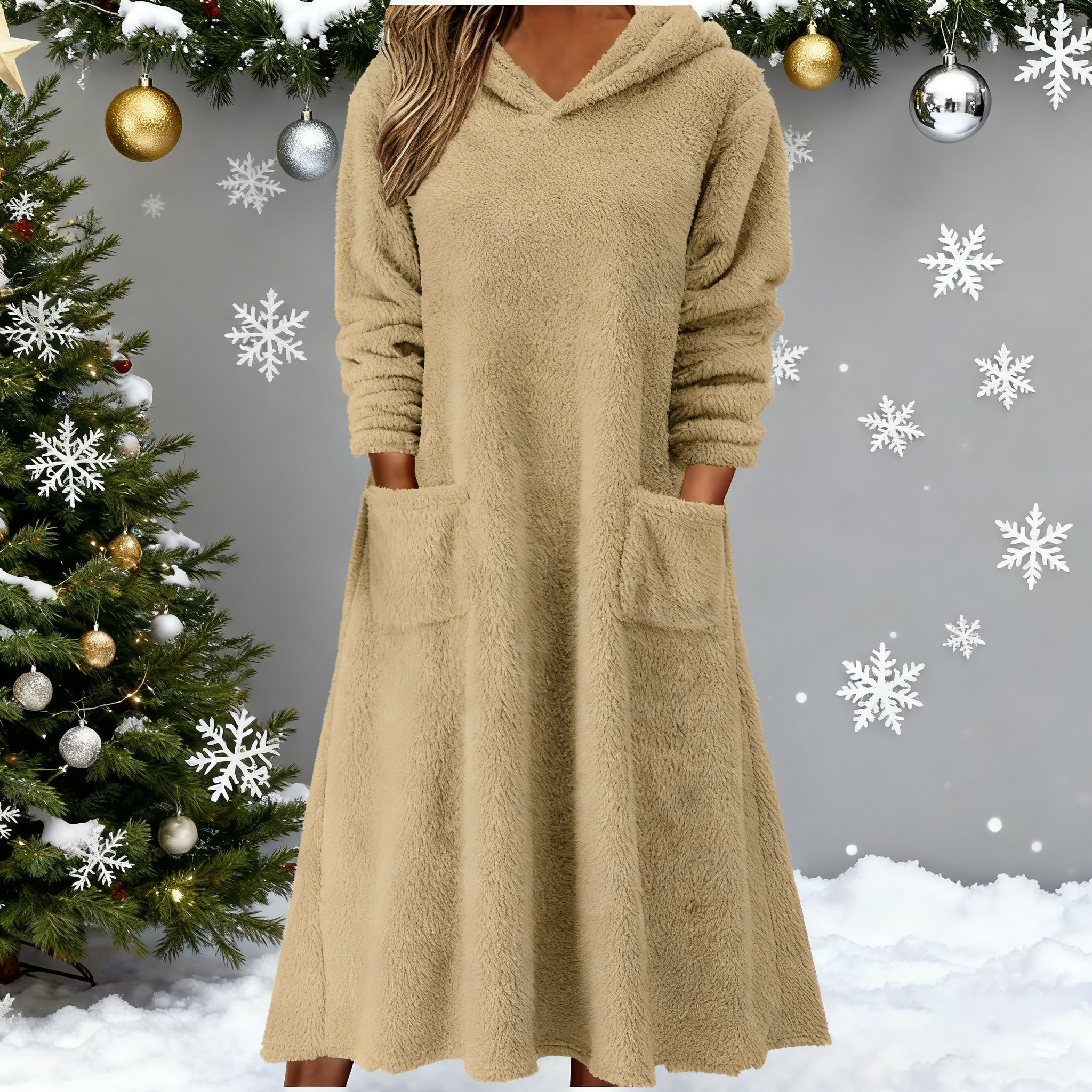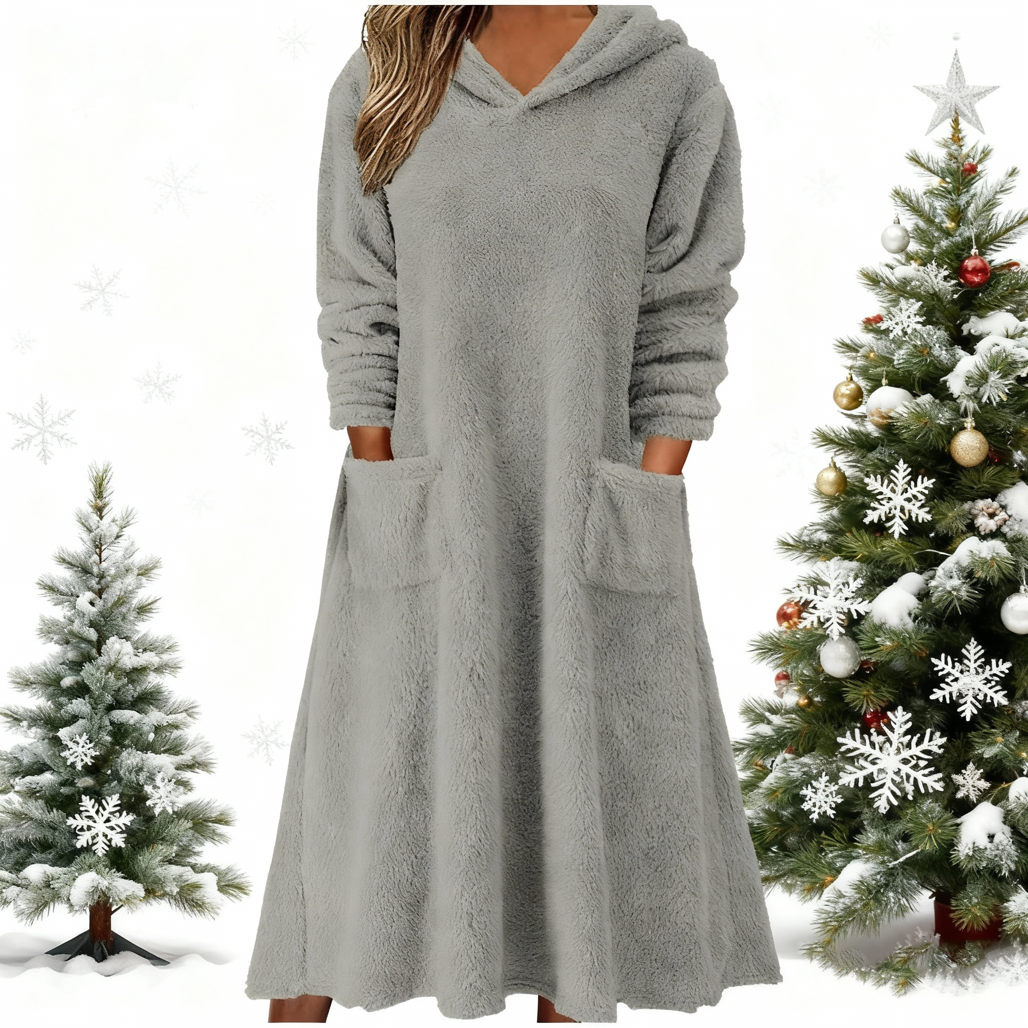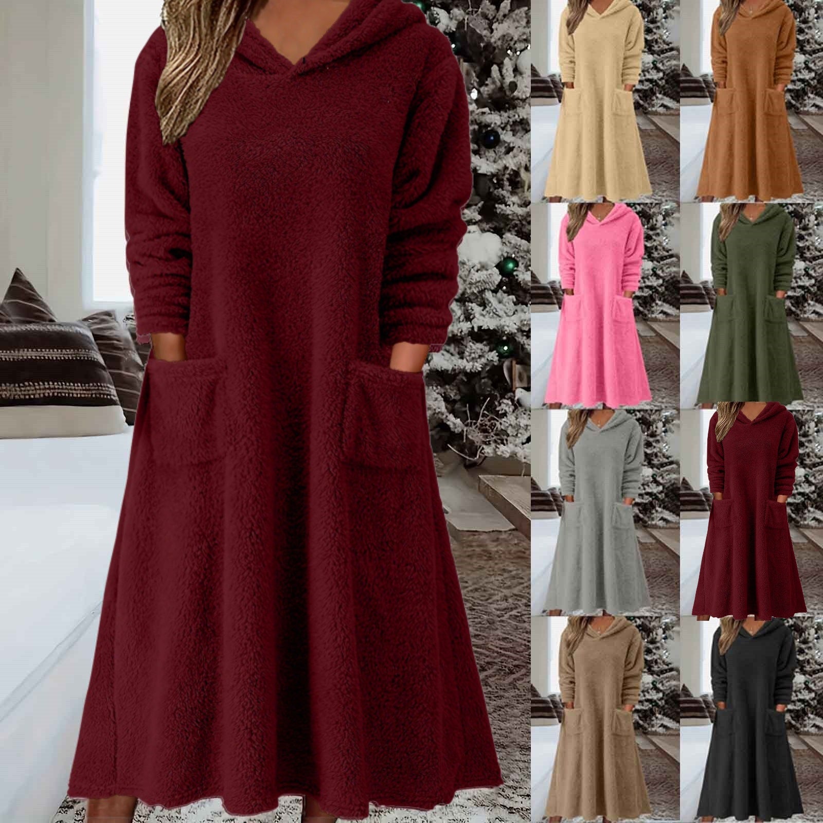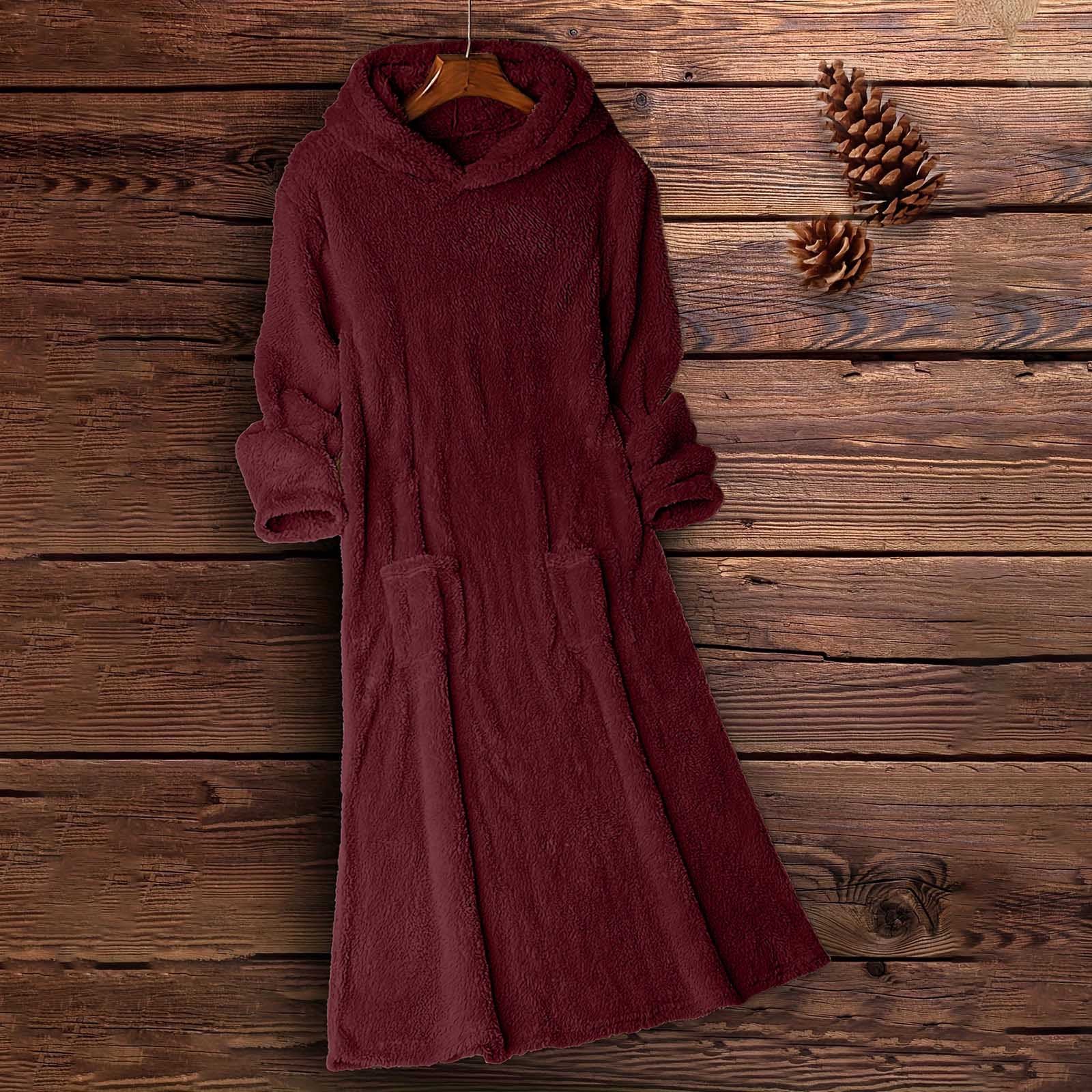 Nowa luźna polarowa sukienka z kapturem i długimi rękawami do użytku domowego 2025