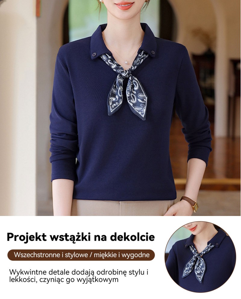 【XL-5XL】Modna, casualowa bluza na wiosnę i jesień, model wkładany przez głowę, z ozdobną wstążką przy dekolcie