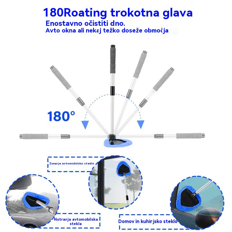 🎁【1 trikotna plastična kosa + 4 prevlek iz blaga】💦Komplet za čiščenje vetrobranskega stekla avtomobila - raztegljiv in vrtljiv za 180°