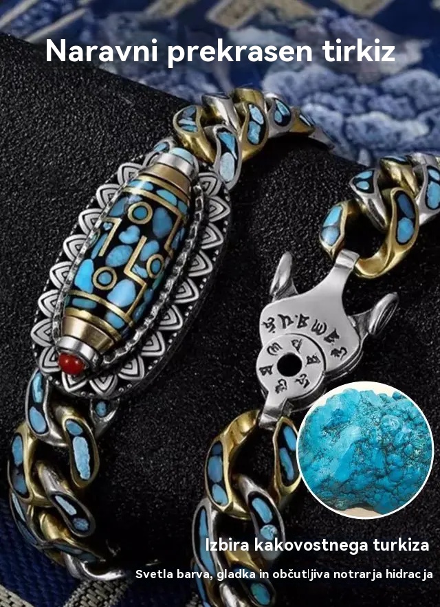 【Kupi 1, prejmi 1 gratis】925 srebrna retro zapestnica s šestimi številkami, turkizna, z mantričnimi perlami